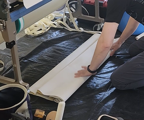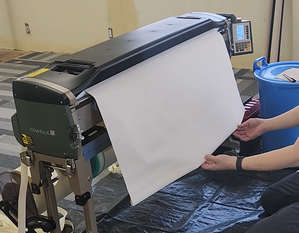 2024.07.30 内装A クロスの糊付け クロスの糊付け。 糊付け機に長さを設定して、 糊が付いてできます。 みょーーーん。 切って、 糊付け面同士を合わせて畳み、完了。 職人の背中 前の記事 クロス貼り 次の記事
