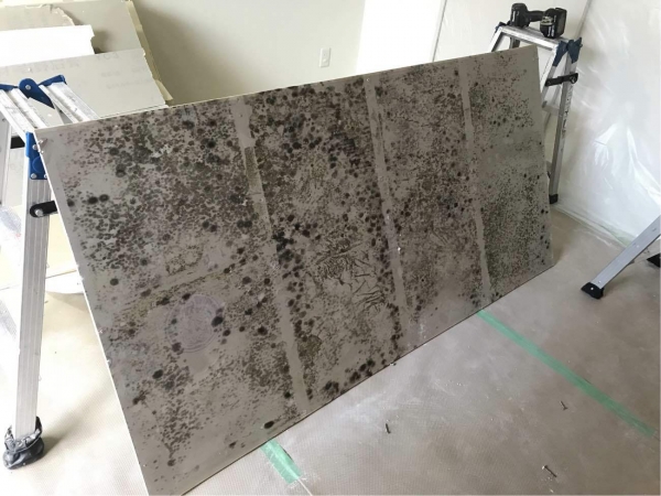 階下の部屋の天井断熱材をめくったら、ボードが水を吸いカビが発生してしまいました。